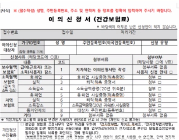 그리고 건강보험료 관련하여, 휴폐업의 경우 휴폐업이 되었다는 사실 증명서를 내셔야 하고 소득 감소 되었다면 꼭 소득감소를 신고를 하셔야 합니다. 급여 감소 또한 마찬가지겠죠? 이렇게 급여가 감소된 상황인데도 의료보험에는 반영 되지 않아 못 받는 케이스가 많습니다. 또한 재산적 부분이 애매하거나 금융 재산 변경이 된 건에 대해서 다시 체크해보시기 바랍니다.